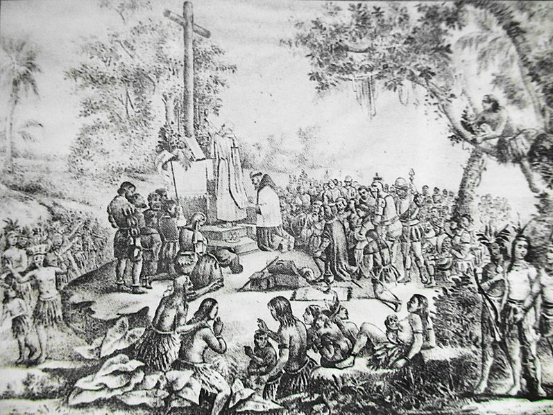 Primera misa cristiana en el continente americano: villa de Santa María de la Victoria.