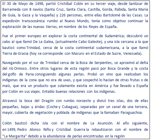 - Partida desde España de Cristóbal Colón en su tercer viaje