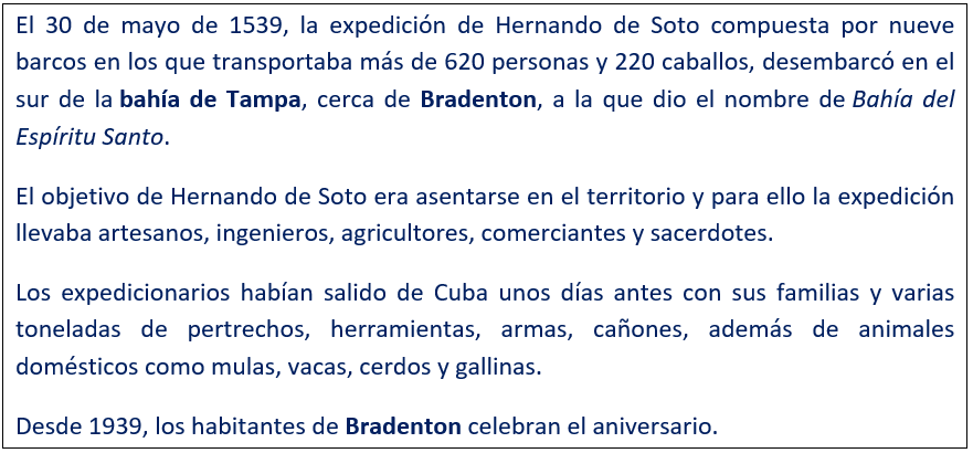 - Desembarco de Hernando de Soto en Tampa, Florida