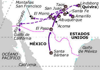 En 1540, Francisco Vázquez de Coronado partió al frente de una expedición por tierra desde Compostela (Nayarit), al frente de 340 hombres y cientos de nativos aliados. Tras cruzar México llegó hasta el este de Kansas y regresó por la misma ruta y sólo cien de sus hombres volvieron con él. Una partida del grupo, comandada por el capitán García López de Cárdenas, descubrió en 1540 el gran cañón del Colorado. 2013-12-16-Ruta de Vázquez Coronado en USANingún europeo volvió a visitarlo en 200 años.