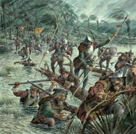 1566-1587 Españoles en Carolina del Sur (Sitio Charlesfort-Santa Elena). El 1 de diciembre de 1566, el capitán Juan Pardo y otros 125 hombres partieron de Santa Elena, Florida (situado en la actualidad en Parrish Island, Carolina del Sur) para reclamar el interior del territorio para España, pacificar a los nativos, convertirlos al catolicismo y establecer una ruta hasta las minas de plata de Zacatecas, México. En esa expedición fundaron cinco fuertes (en ambas Carolinas) que dos años más tarde habían sido quemados por los nativos, asesinando a sus guarniciones. España dejó de intentar colonizar el interior.conquista--644x362