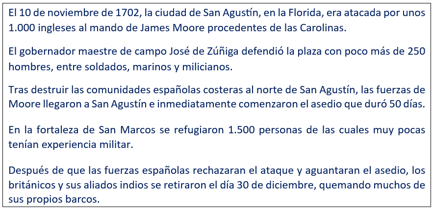 - Ataque británico a San Agustín en 1702, Florida