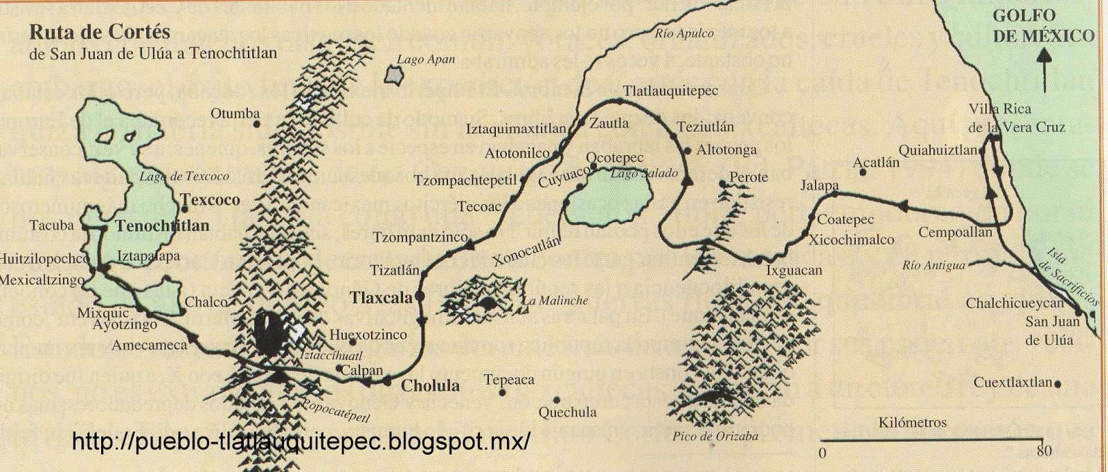 Después de salir de Tabasco por mar, el 12 de abril de 1519, la expedición de Hernán Cortés continuó costeando hacia el noroeste, pasó la desembocadura del río Tlacotalpan y el 20 de abril llegó a la isla de los Sacrificios. Allí se orientó con unos nativos y al día siguiente ancló enfrente de la isla de San Juan de Ulúa (nombre dado por Grijalva, un año antes), a menos de media milla de tierra y cerca de la ciudad totonaca de Chalchicueycan, que es hoy el puerto de Veracruz (no confundir con la Villa Rica de la Vera Cruz, fundada más al norte en Quiahuiztlan, a unos 70 km). Se encontraban en las tierras de Cempoala.