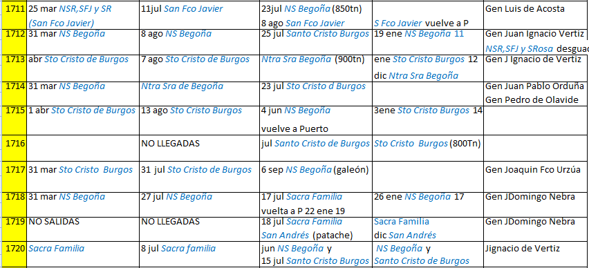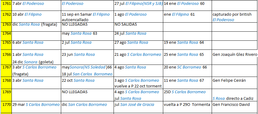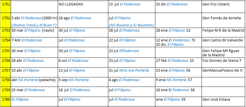 En el dato de los buques naufragados, se han incluido los perdidos sin noticias, que son muy pocos, así como los que ya habían llegado a algún puerto, normalmente de Filipinas, e incluso habían desembarcado la carga.