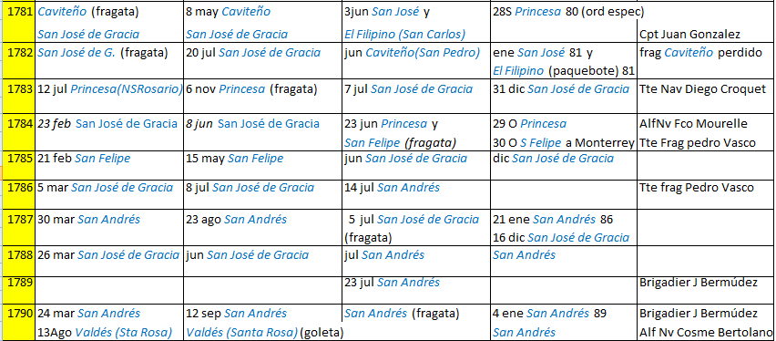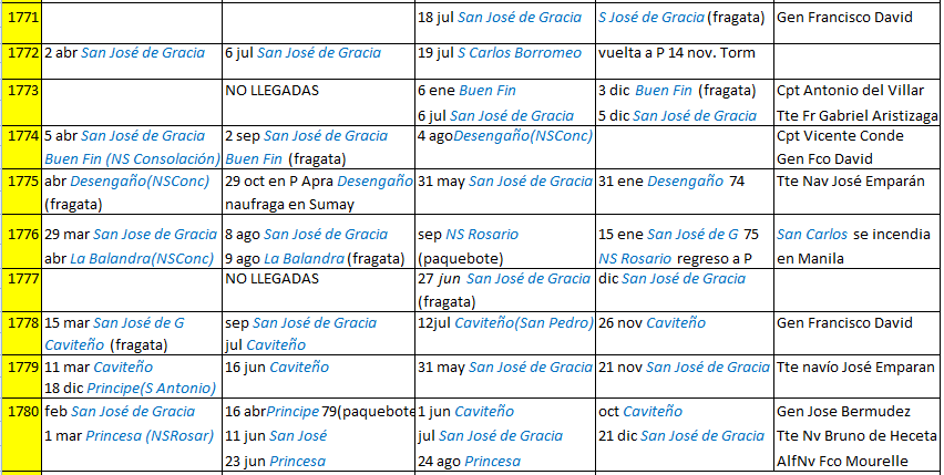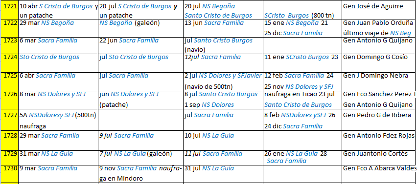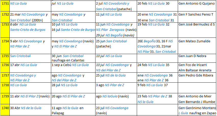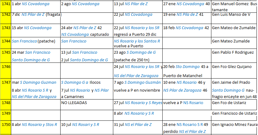 En relación al controvertido número de naves que participaron en el galeón de Manila, en este resumen se han descontado lógicamente los distintos nombres que se les daba a una misma embarcación y se han incluido los navíos que figuran como particulares, ya que las fuentes apenas los diferencian, los navíos de aviso y los navíos de escolta, generalmente buques de guerra. Cuando han navegado entre dos siglos, se han contabilizado en el primero.
