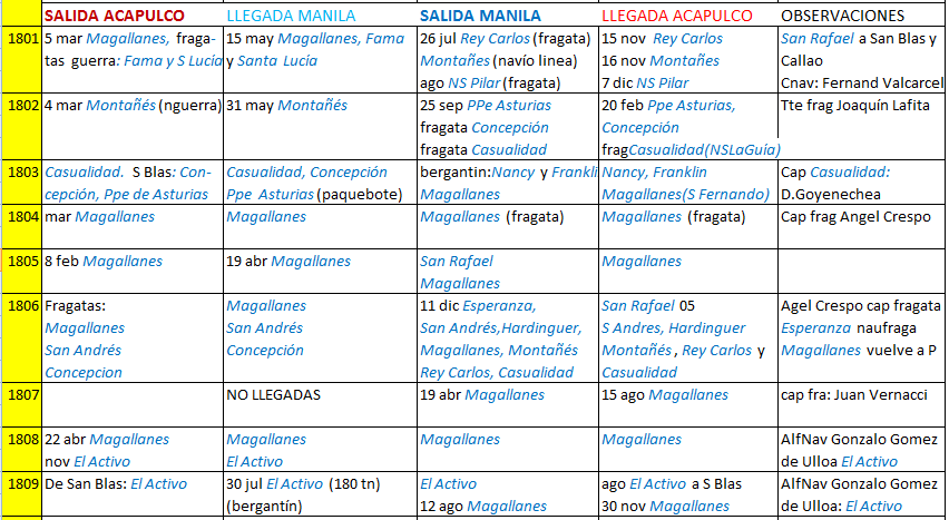 de viajes con el siglo XVIII y los primeros 15 años del XIX, en los que España mantuvo la ruta Acapulco-Manila-Acapulco.