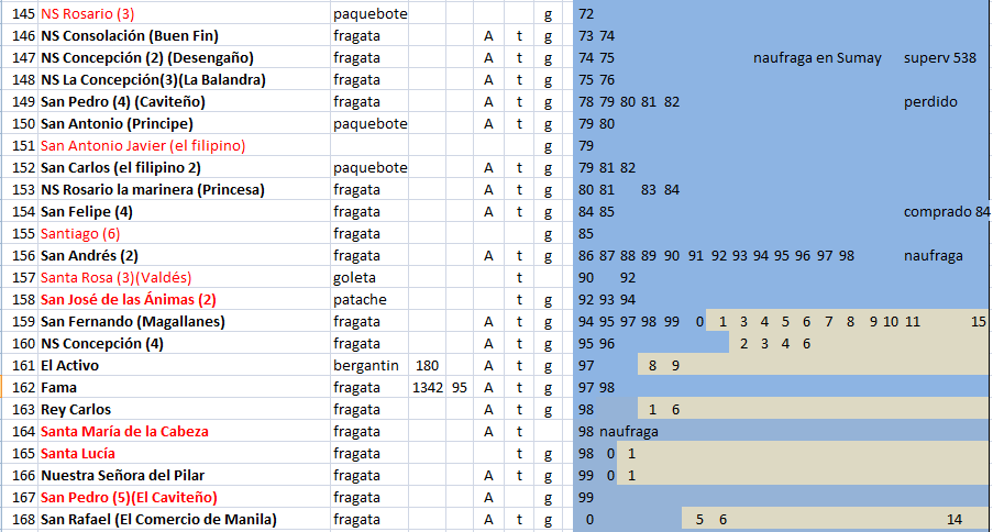 En el post Galeones de Manila (III parte), sostengo en el cuadro resumen que fueron 163 los buques que participaron en esta carrera de Filipinas, al deducir que algunos (quizás 9) que se mencionan en una sola fuente, probablemente también lo hicieron.