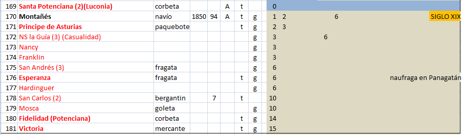 De las mismas he comprobado que coinciden en las tres fuentes, los nombres de 128 buques en fechas compatibles (en el listado en negrita).