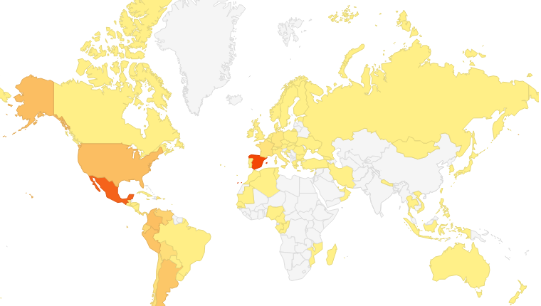 España con el 25% de las visitas y México con el 20% acaparan casi la mitad.