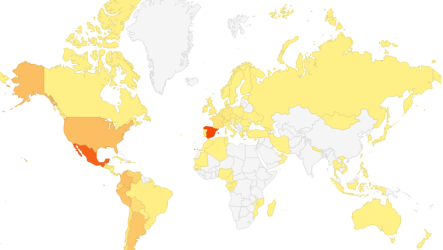 Llama la atención las visitas desde algunos países que pueden considerarse exóticos, como Aruba o Reunión desde el Caribe, o Nepal, Omán y Qatar desde Asia, o Madagascar y República del Congo desde África.