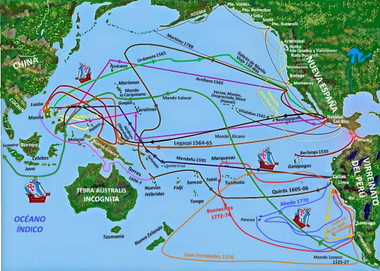 regularmente el Pacífico en viajes de ida y vuelta (hasta 1815), en lo que fue la ruta más larga de la historia hasta ese momento, y según algunos historiadores el origen de la globalización.