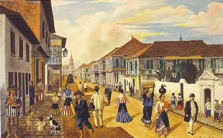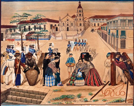 Plaza Mayor 1847. A la derecha el Cabildo.