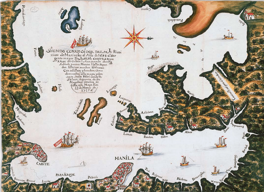 Mapa de Manila y su bahía, con indicación de la ensenada de Subig y las poblaciones de Cavite y Manila. 15 de marzo de 1715. Papel manuscrito; di