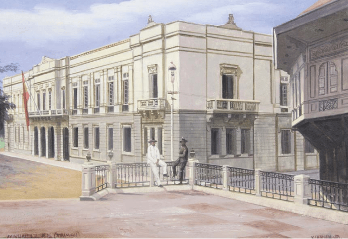 Antiguo Ayuntamiento de Manila. Pintura al oleo de Cabisada junior. finales XX. Museo Oriental de Valladolid.