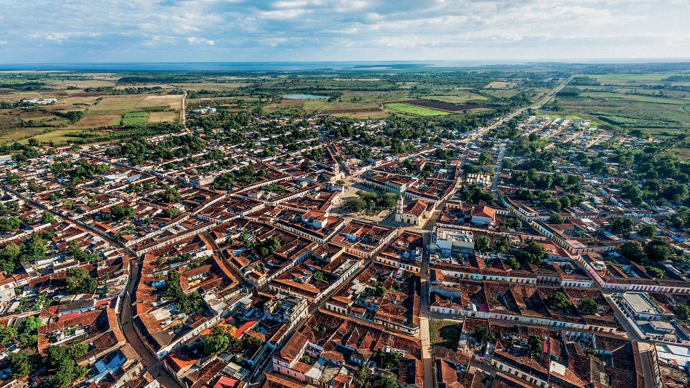 Vista de la Iglesia Mayor y de la Ermita del Buen Viaje. Grabado del siglo XVIII.