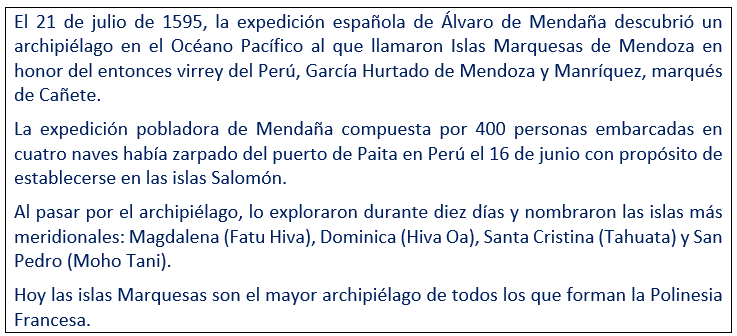 - Descubrimiento del Archipiélago de las Marquesas