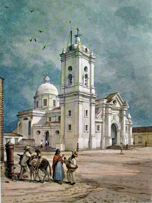 Catedral del Sagrario de Santa Marta (1760), según Edward Mark Walhouse 1845. Biblioteca Luís Ángel Arango