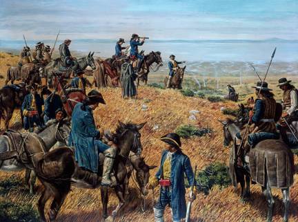 A continuación iba Anza con el flamante uniforme de su nuevo cargo de teniente coronel. En los flancos iba una escolta de jinetes.