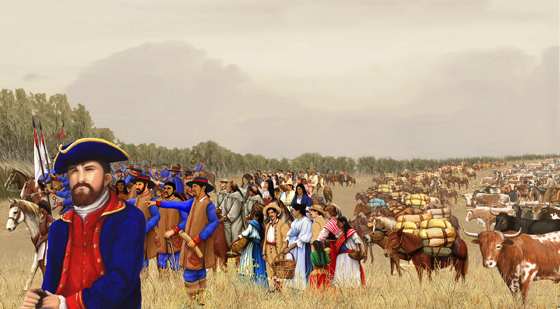 Entre los pobladores se calcula que había 30 familias con 42 hombres (el mayor de 49 años) y  39  mujeres (la mayor de 45 años), 92 menores de doce años, de los cuales seis tenían entre 2 y 10 años y diez menores de 1 año. También eran de la partida veintisiete indios sirvientes, tres indios intérpretes e indios auxiliares, sin contar que por el camino se les juntarían indios amigos, alcanzando en una ocasión hasta doscientos de ellos.