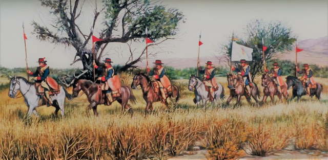 A continuación iba Anza con el flamante uniforme de su nuevo cargo de teniente coronel. En los flancos iba una escolta de jinetes.