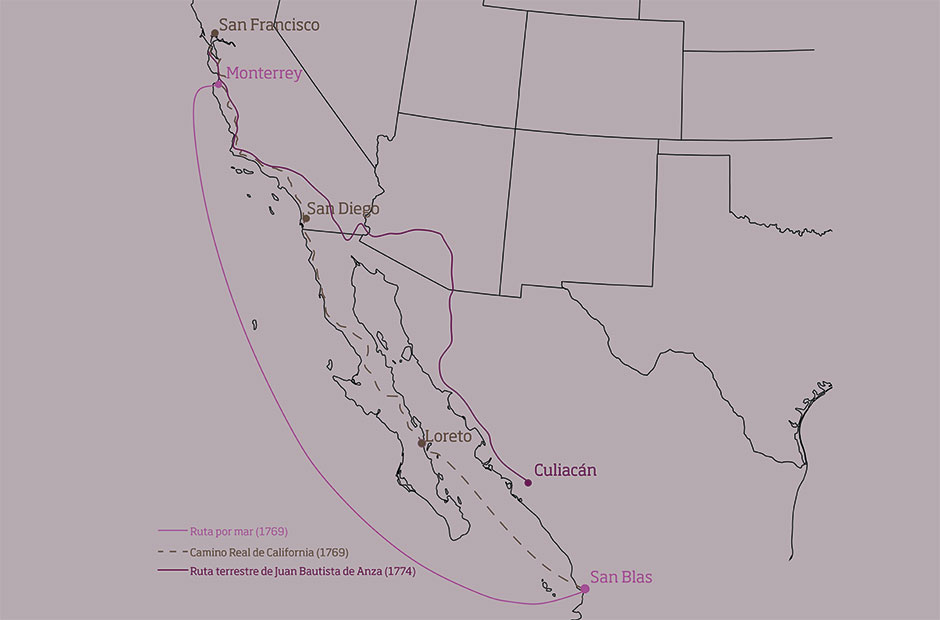 Fue fray Junípero Serra de vuelta de fundar sus primeras misiones, uno de sus impulsores; había celebrado reuniones con el virrey Bucareli en la ciudad de México durante casi siete meses y antes de regresar a su misión de San Diego de Alcalá el 13 de marzo de 1774, había conseguido convencerlo para que se aprobase la creación de un camino por tierra desde Sonora, que llevara auxilio a las misiones de Nueva California que estaban pasando momentos difíciles.