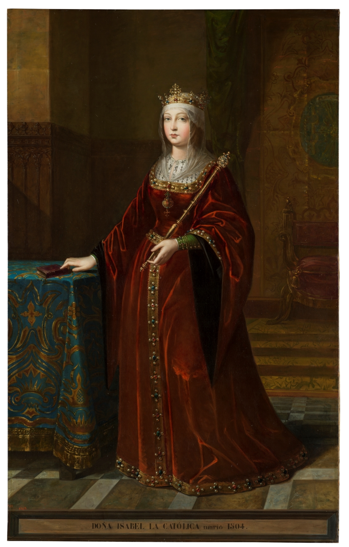 Reina de Las Islas y Tierra Firme del Mar Océano, primera reina de las Indias del Nuevo Mundo que se llamará América, Isabel I de Castilla la Católica, contaba con 41 años cuando Cristóbal Colón puso pie en aquellas tierras desconocidas. Reina de Castilla desde los 23 años, está considerada junto con su esposo Fernando II de Aragón, la hacedora de la unidad de los reinos peninsulares y americanos, que dieron origen a la Monarquía Hispánica.