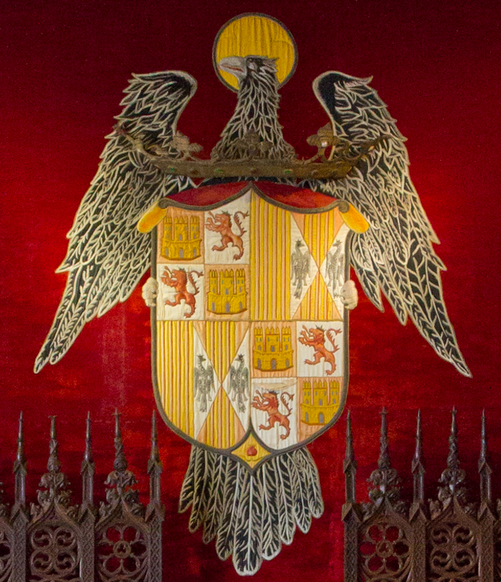 La reina Isabel adoptó unas divisas como símbolos que se han mantenido y aún algunos se encuentran hoy en el Escudo Nacional de España. El águila de San Juan nimbada que sostiene las armas del reino, a las que la soberana agregó el lema «sub umbra alarum tuarum protege nos» (protégenos bajo la sombra de tus alas), que obedece a la devoción de la reina por el Evangelista. Fue también divisa de la reina las flechas abatidas, que simbolizan la unidad y el imperio.