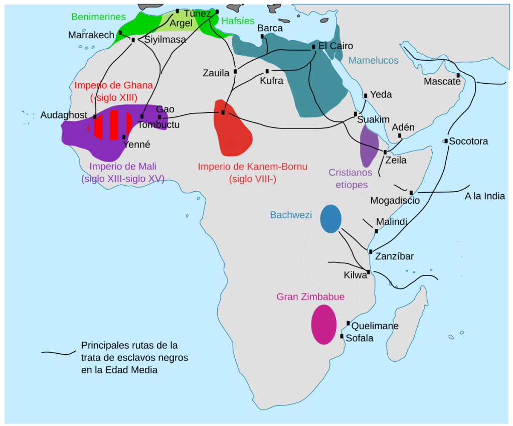 El trafico de esclavos en África para ser vendidos en los mercados mediterráneos fue monopolio de los árabes, incorporándose los portugueses en el siglo XV. Floreció durante aproximadamente la misma época que el tráfico transatlántico de esclavos y devastó a cientos de comunidades costeras europeas. La costa de Berbería, que se extiende desde Marruecos hasta la actual Libia, fue el hogar de una próspera industria del secuestro de seres humanos desde 1500 hasta aproximadamente 1800. Las principales capitales esclavistas eran Salé (en Marruecos), Túnez, Argel y Trípoli. Durante los siglos XVI y XVII fueron más numerosos los esclavos conducidos al sur a través del Mediterráneo que al oeste a través del Atlántico. En 1454, el Papa había reconocido el tráfico de esclavos y a partir de entonces fueron utilizados para aumentar la productividad de las plantaciones de caña de azúcar en Madeira y, desde 1493 lo será en América. El mismo fray Bartolomé de las Casas aprobó la importación de esclavos negros para que trabajaran en las minas, antes de convertirse en el defensor de los indios por excelencia.