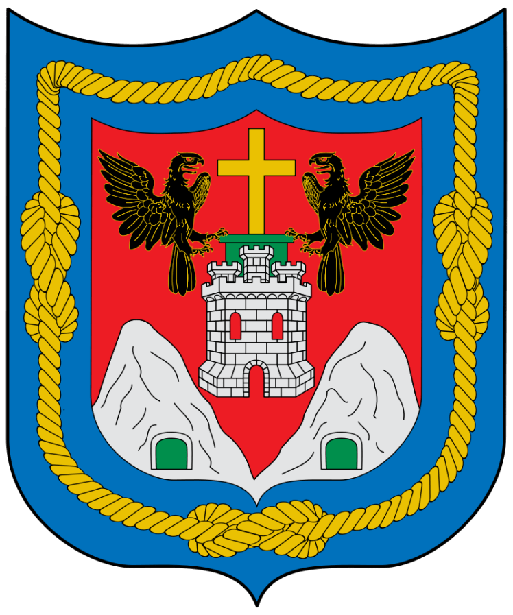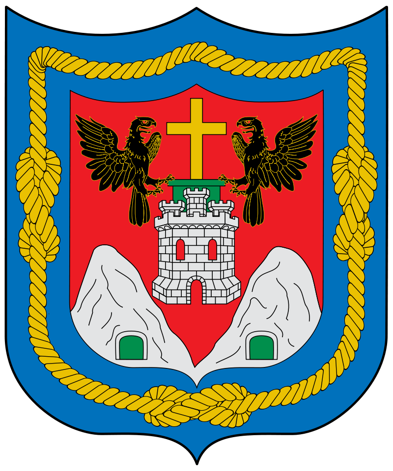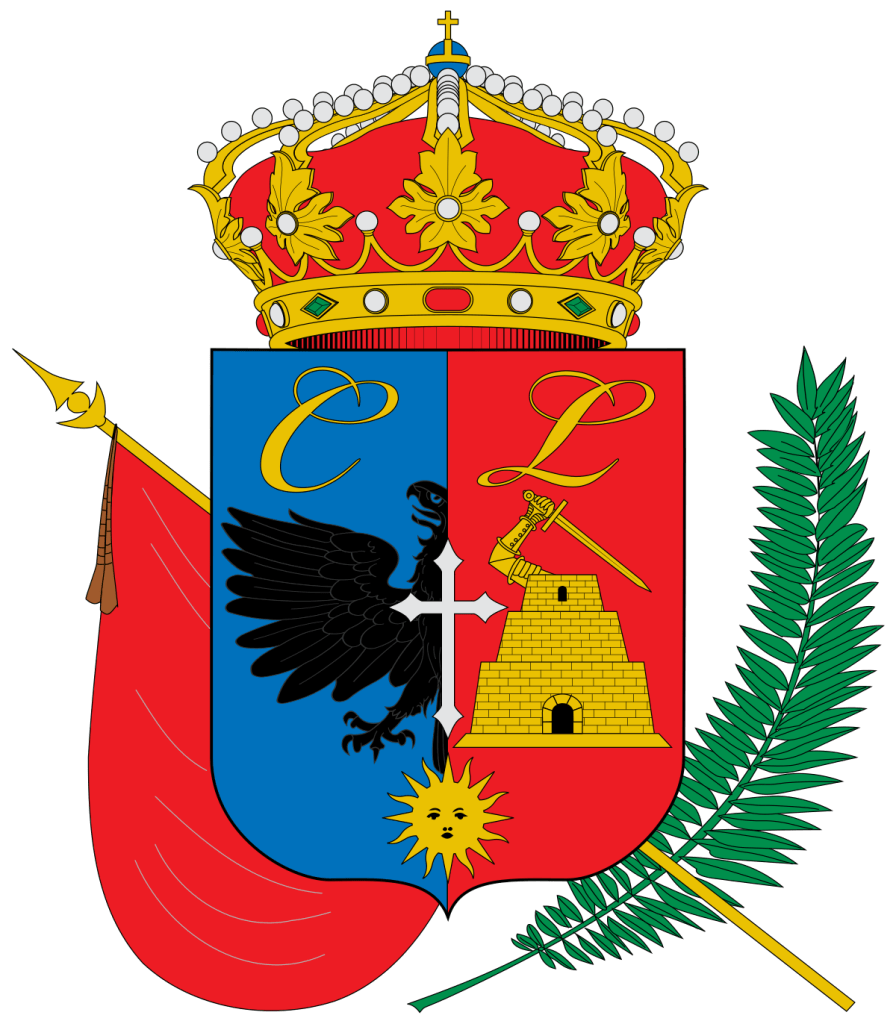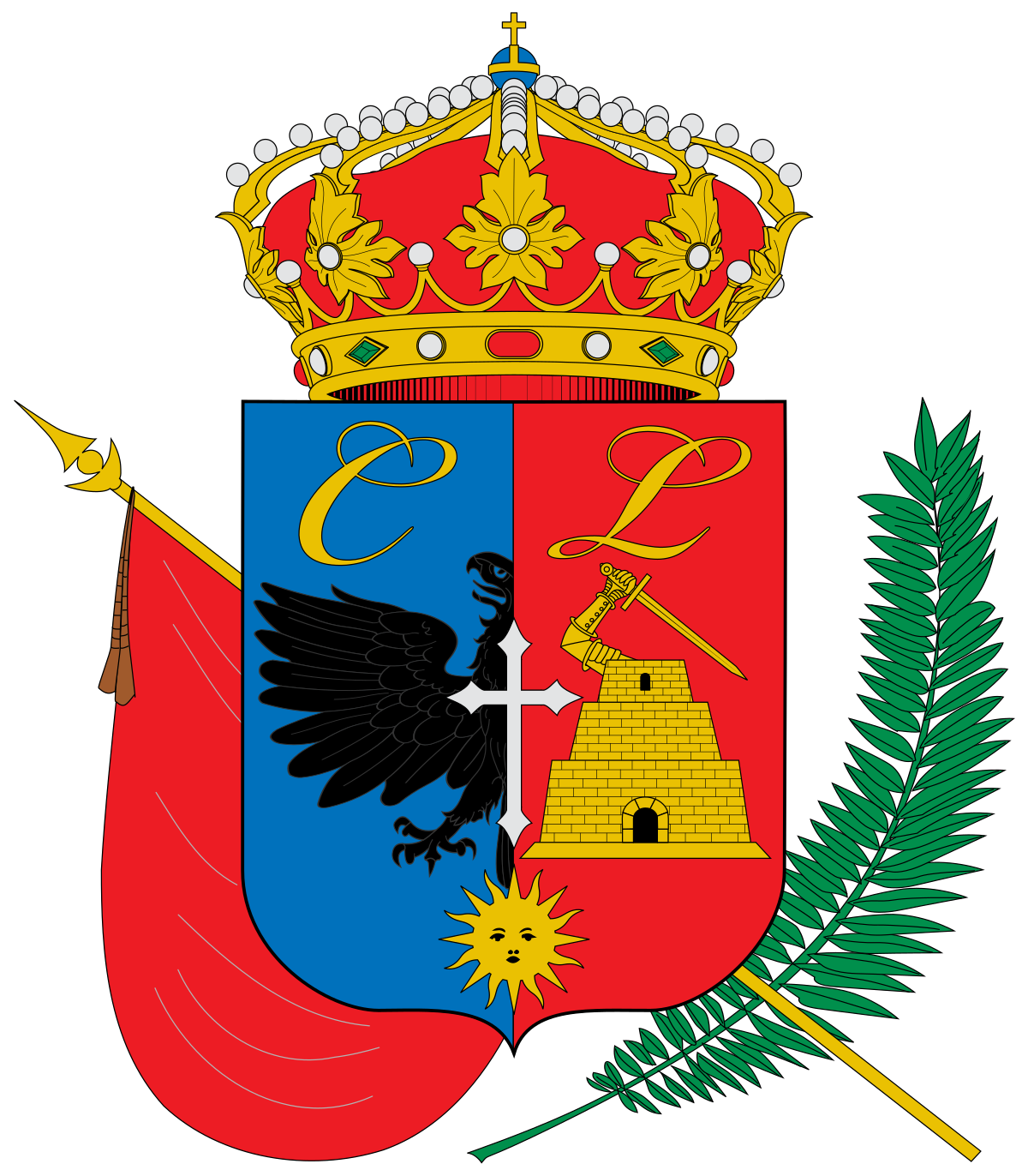 «Al extremo izquierdo está la bandera de los Reyes de España. Al otro extremo, una rama de palma. La corona real encima del cuartel. Internamente en el cuartel, la mitad de un águila negra. En el cuartel derecho, una fortaleza con un brazo y espada española, en la parte superior. Al centro, la presencia de la cruz sobre el sol. Resaltan las letras “C” y “L”, en la parte superior central de cada uno de los campos del cuartel, iniciales de los nombres de Carlos IV de Borbón y su esposa, la reina María Luisa de Borbón».