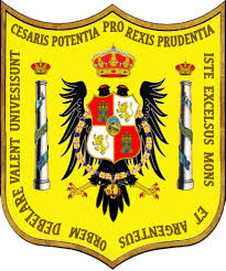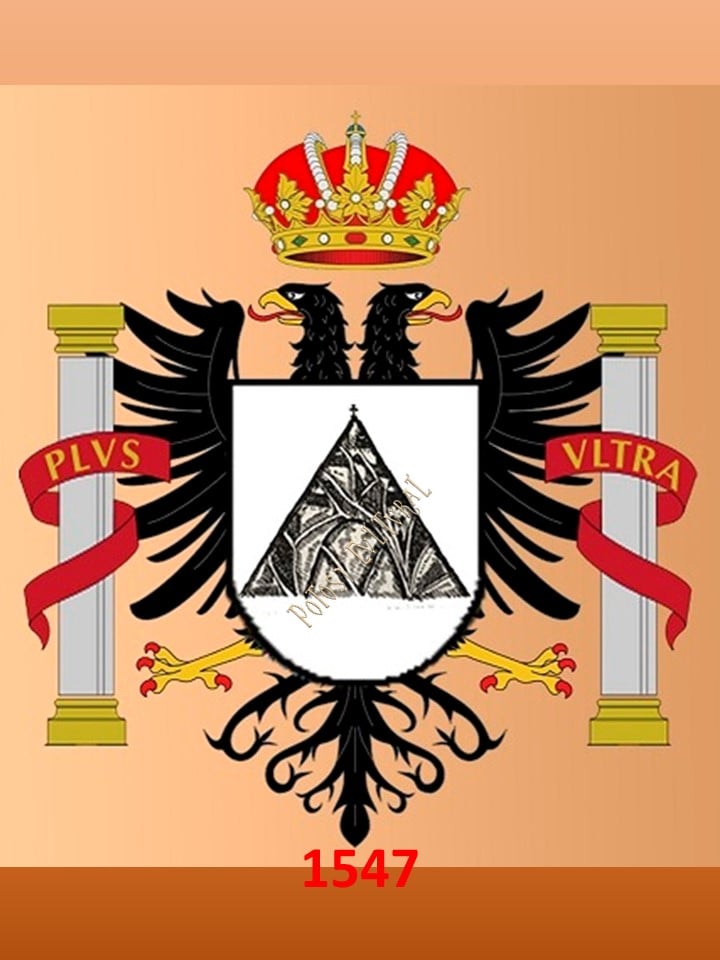 Villa Imperial de Potosí. El primer escudo de armas le fue otorgado en Ulm (Alemania) por Carlos I de España, por cédula real de 28 de enero de 1547. El segundo escudo fue otorgado en Segovia por Felipe II, el 1 de agosto de 1565 junto al título de ciudad imperial y el tercero por el virrey del Perú, Francisco Álvarez de Toledo por Provisión Real del 2 de agosto de 1575 en Arequipa. «Un escudo en campo amarillo, con dos castillos y dos leones, y el toisón en el pecho de un águila imperial con dos cabezas cortadas y una corona en medio de las dichas dos cabezas, y dos columnas imperiales a los lados de las dichas armas con una letra que dijese PLVS VLTRA, y el dicho cerro rico de Potosí con una blasón a la redonda de todo el escudo que dijese: CESARIS POTENTIA = PRO REXIS PRUDENTIA = ISTE EXCELSUS MONS ET ARGENTEUS = ORBEM DEBELARE VALENT UNIVESISUNT».