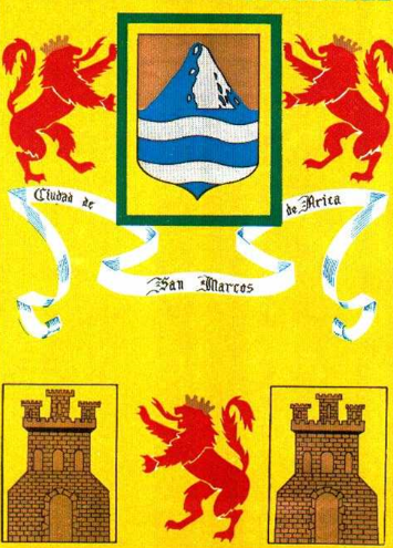 San Marcos de Arica. En 1657, Felipe IV, rey de España, dotó por mandato real a la ciudad de San Marcos de Arica de su Escudo y Emblema de Armas. «El Virrey del Perú, Luis Henríquez de Guzmán, conde de Alba de Liste, ordena, siguiendo las instrucciones del Rey Felipe IV, a Don Nuño Ordóñez de Águila, caballero de la Orden de Santiago, Corregidor de Arica, que la «figura Emblema» de la Ciudad sea protocolizada en el libro de Acuerdos o Cédulas Reales» orden que fue cumplida el 4 de junio de 1657. «Dos campos iguales. Superior fondo oro, monte blanco de plata. Inferior fondo azul, barras ondulantes de plata. Al centro (el Cerro Rico), protegida por dos leones rampantes coronados, y otro león rampante en su parte inferior, con dos torreones»