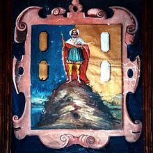 San Luis Potosí. Escudo otorgado en 1656 por el virrey Francisco de la Cueva y reconocido el 17 de agosto de 1658 por el rey Felipe IV. «Un cerro con campo azul y oro, con dos barras de plata y otras dos de oro, y con la imagen de San Luis en su cumbre».