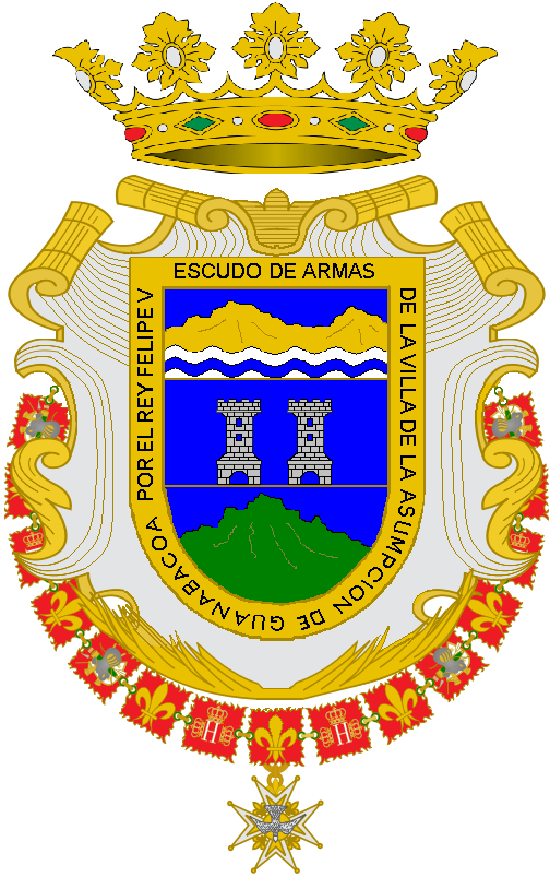 La Asunción de Guanabacoa, Por real cédula dada en San Ildefonso a 13 de agosto de 1743 se concede escudo de armas a la villa de Nuestra Señora de la Asunción de Guanabacoa. «Un escudo que tenga un pedazo de mar en la parte superior, en el medio los dos fuertes de Cojímar y Bacuranao, en la parte inferior, una montaña y en la exterior, dando vuelta al escudo y por orla de él la inscripción siguiente: Escudo de ar mas de la Villa de la Asunción de Guanabacoa por el Rey Ntro. Sr. Don Felipe Quinto»