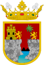 San Agustín. Los ciudadanos de San Agustín solicitaron en 1715 el emblema heráldico a Felipe V por su lealtad al servicio del Reino de España. San Agustín no recibió el escudo. En 1991 solicitaron lo mismo a S.M. Juan Carlos. Al tiempo, el cronista de armas Vicente de Cadenas comenzó su investigación y encontró que efectivamente se había solicitado el escudo y que además este fue concedido, pero por alguna causa desconocida no llegó a San Agustín. Así, aunque ha sido el símbolo oficial de la ciudad durante más de 300 años, no fue hasta el 12 de octubre de 1991 pudo entregarse el escudo. «Escudo cuartelado en cruz y brochante de la repartición una cruz estrecha de oro: 1º de azul, una flor de lis de oro; 2º de gules, un castillo de oro aclarado de azul; 3º de plata, un león de púrpura coronado de oro y lampasado y armado de gules; 4 de gules, un brazo armado empuñando una espada de plata. Al timbre, una corona mural de ciudad».