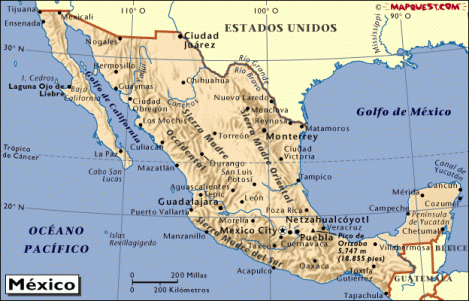 Horario GMT/UTC: -6, -7 y -8 (Baja California)