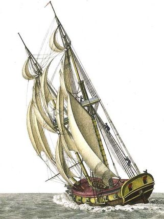 Aparejo: Bauprés y dos mástiles con velas cuadras