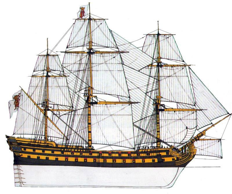 Artillería: 80 cañones (30 de a 24 libras, 32 de a 18 y 18 cañones de a 8 libras)