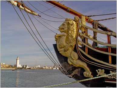 Aparejo: bauprés y tres mástiles con velas cuadras