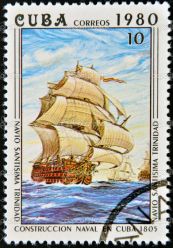 Hecho histórico: construido en América, participó en las batallas del cabo San Vicente, y en el de Trafalgar al mando del brigadier Francisco Javier de Uriarte y Borja
