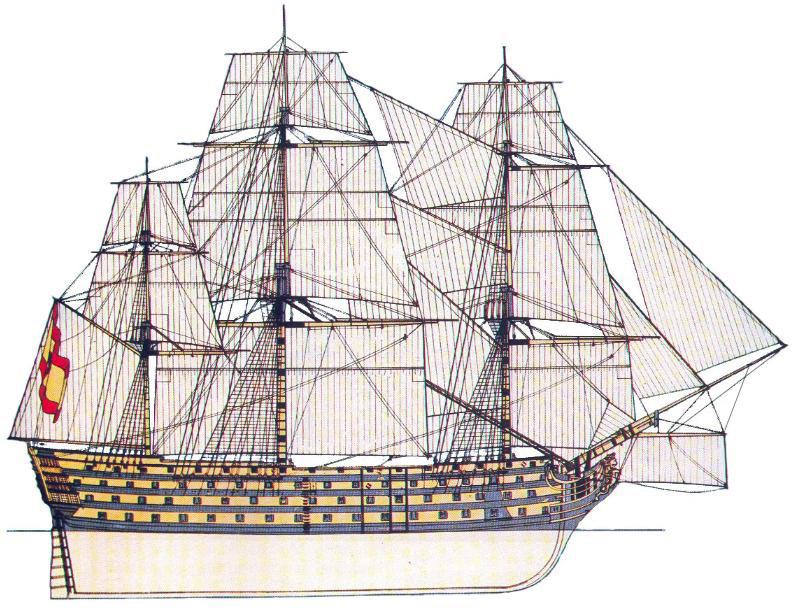 Armamento: 120-140 cañones (30 cañones de 36 libras, 32 de 24 libras, 32 de 12 libras, 22 de 8 libras y 16 obuses de 24 libras)
